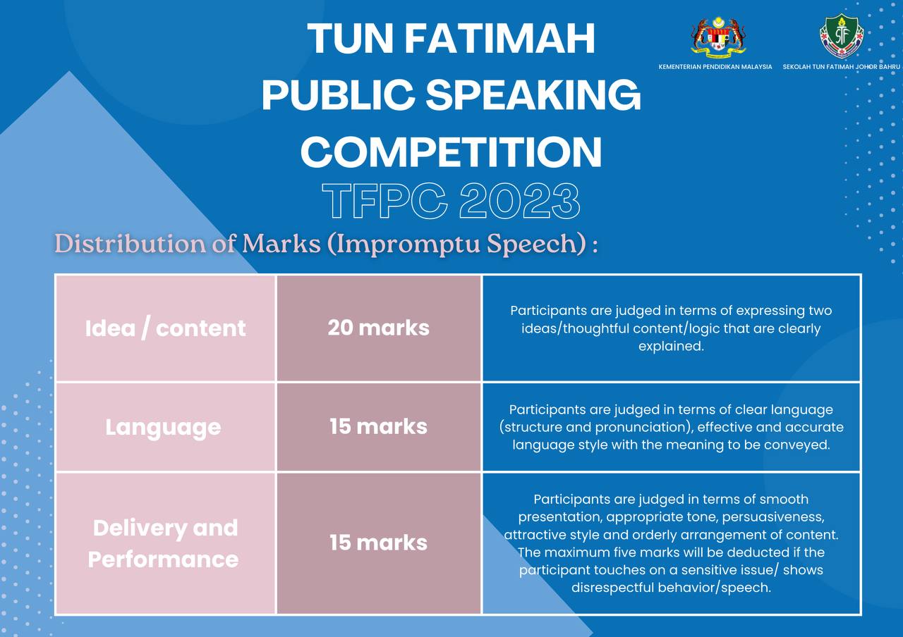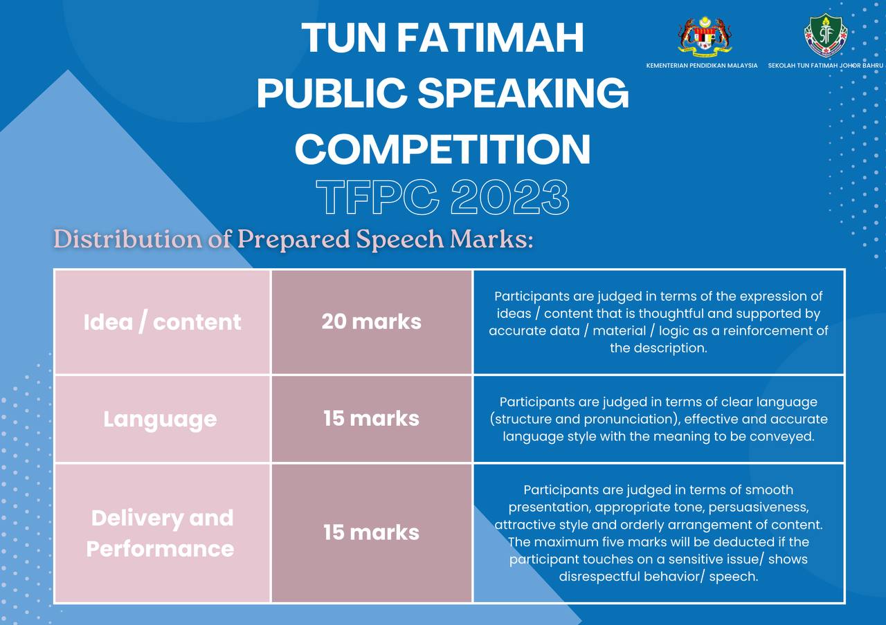 The first round will be conducted online through video submission and the final round will be held at Sekolah Tun Fatimah.