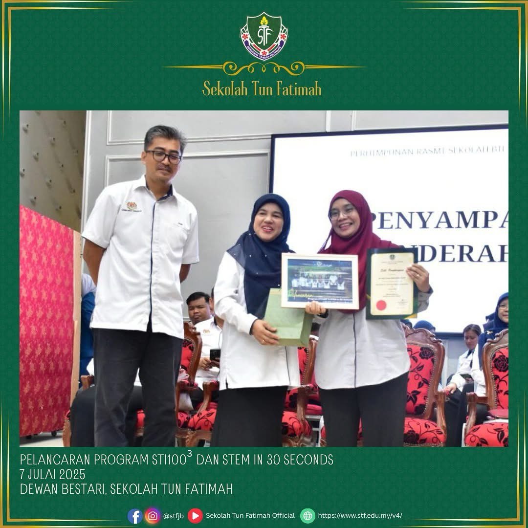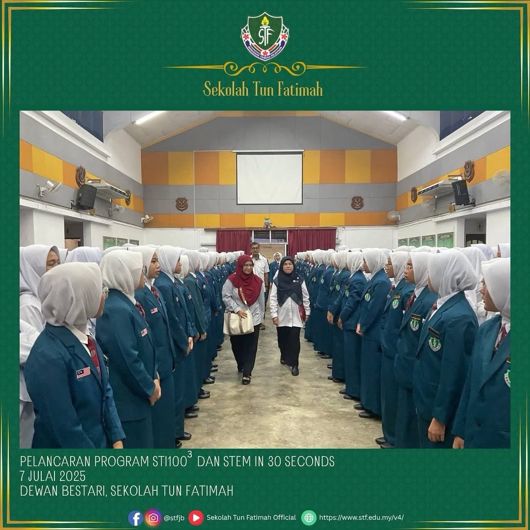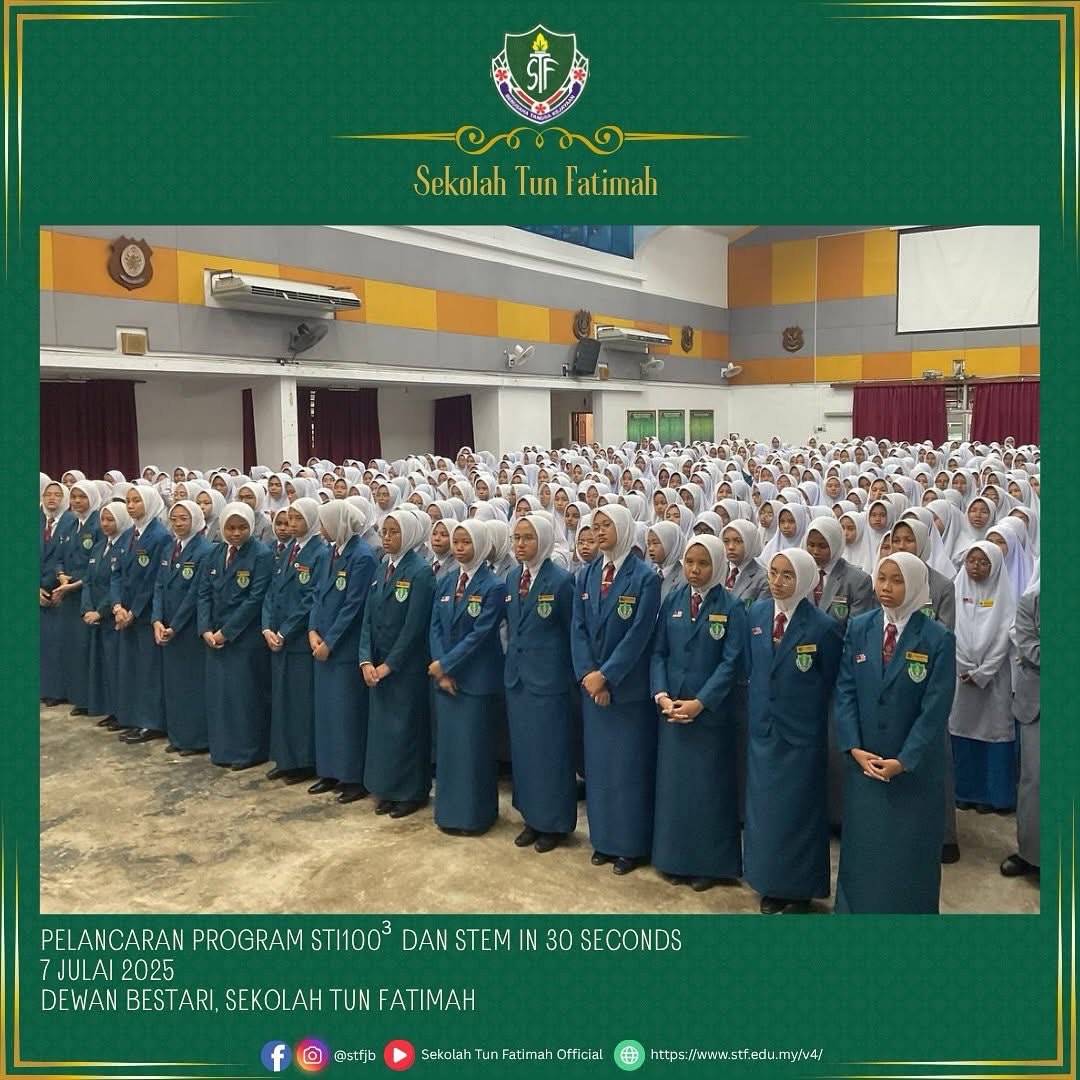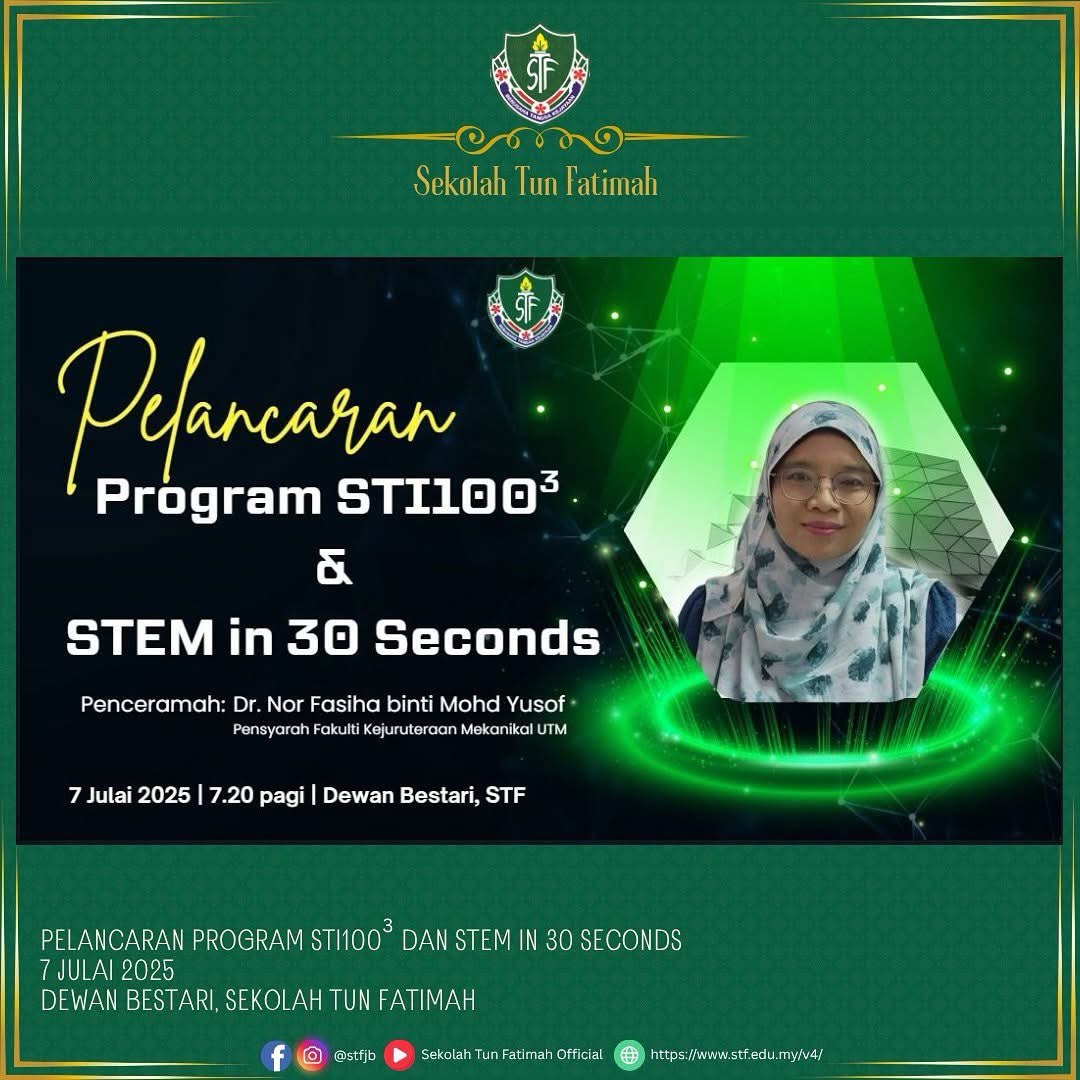 Majlis pelancaran program STI 1003 dan STEM in 30 Seconds telah disempurnakan dengan kehadiran istimewa Dr. Nor Fasiha binti Mohd Yusof, Pensyarah Fakulti Kejuruteraan Mekanikal, UTM. Beliau telah berkongsi pengalaman dan inspirasi kepada murid-murid bagi menyemarakkan minat terhadap dunia Sains, Teknologi, Kejuruteraan dan Matematik.