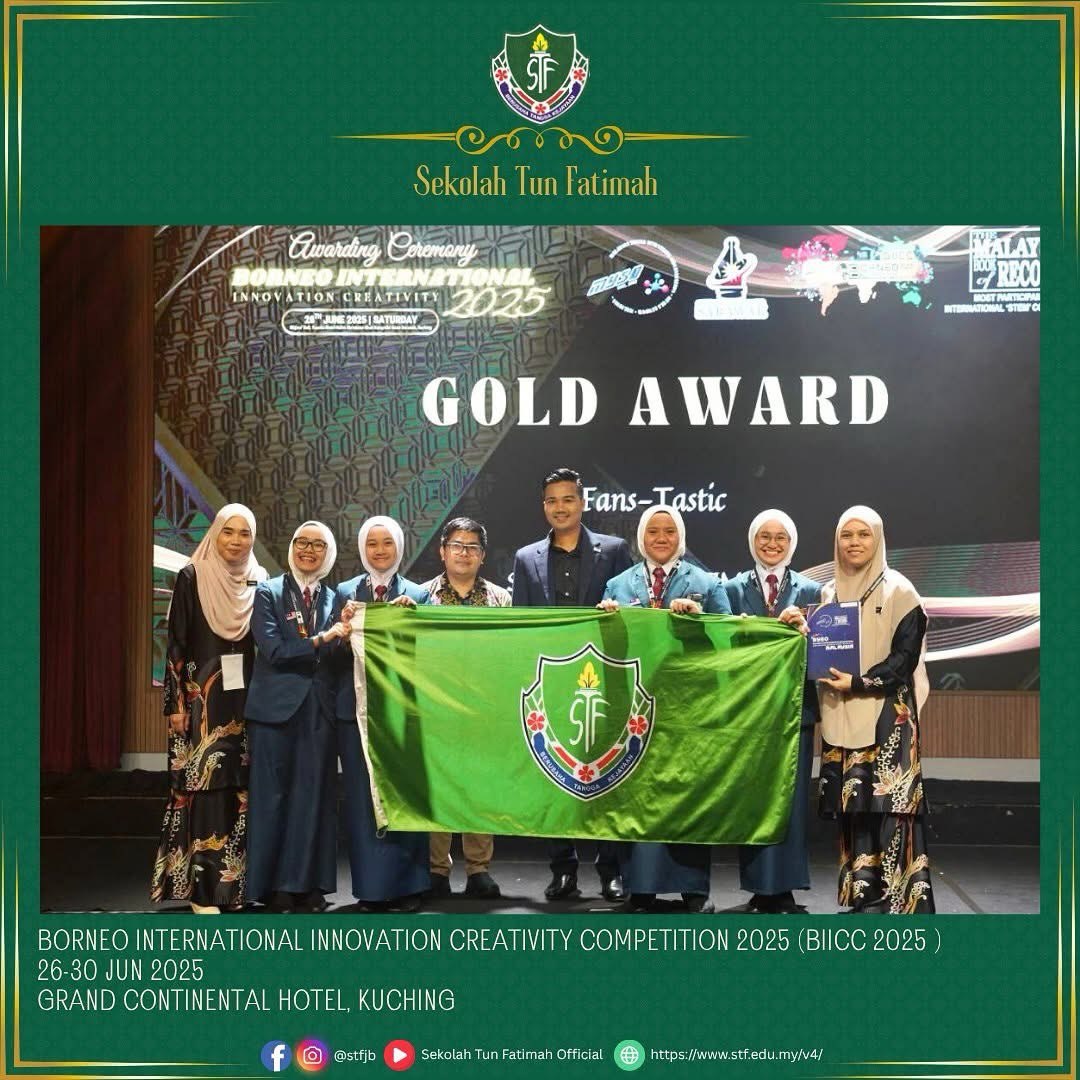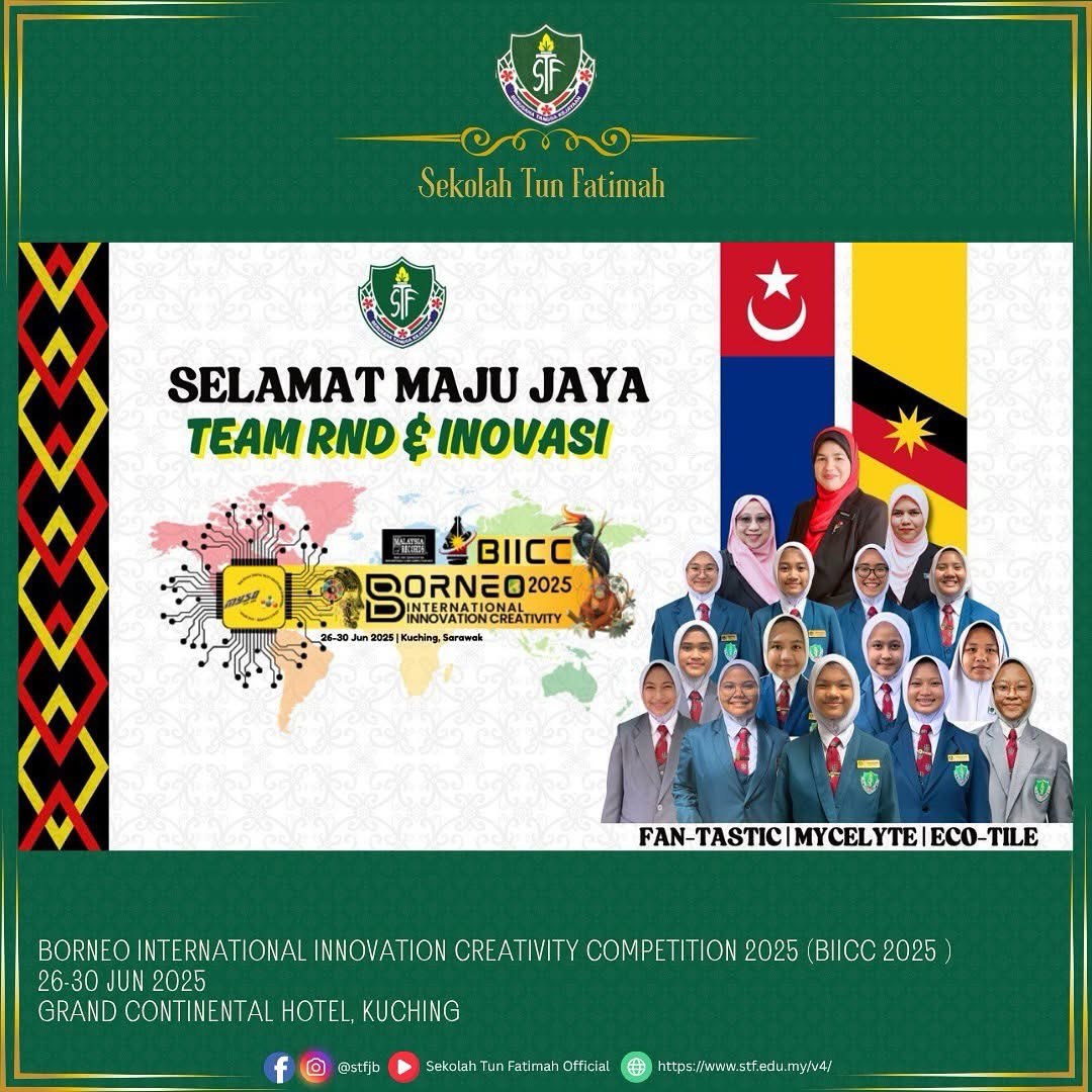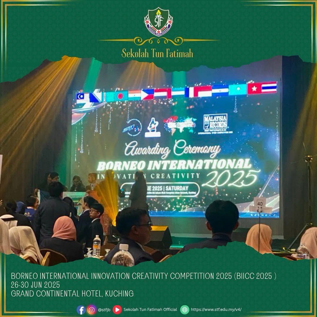 Tahniah dan syabas kepada semua peserta STF yang telah mengharumkan nama sekolah di Borneo International Innovation Creativity Competition 2025 (BIICC 2025) pada 26-30 Jun 2024 bertempat di Grand Continental Hotel, Kuching, Sarawak. Pertandingan berprestij ini dianjurkan oleh Malaysia Young Scientist Organisation (MYSO) menghimpunkan para inovator muda dari seluruh dunia dalam usaha mengangkat potensi kreativiti dan inovasi generasi masa depan.