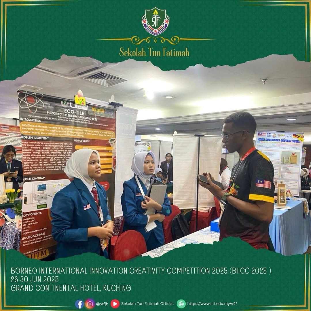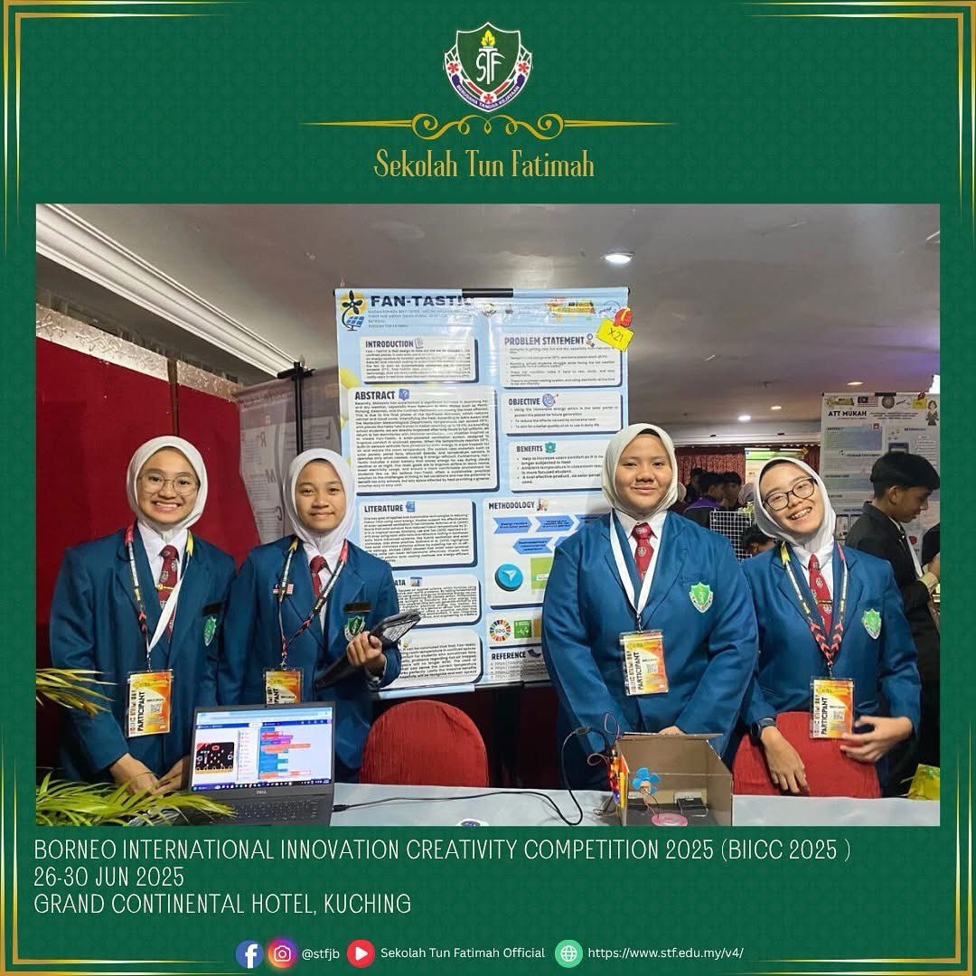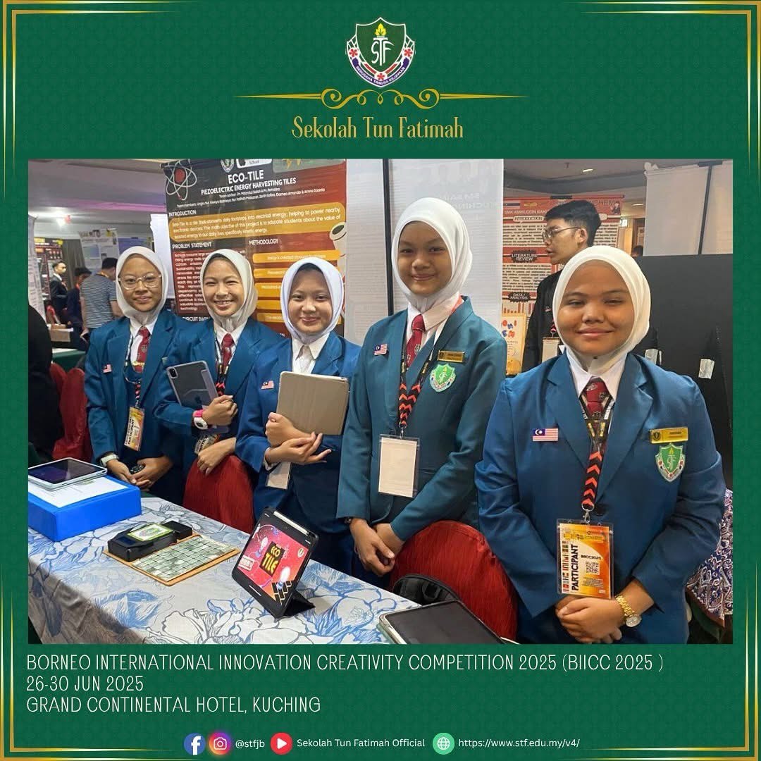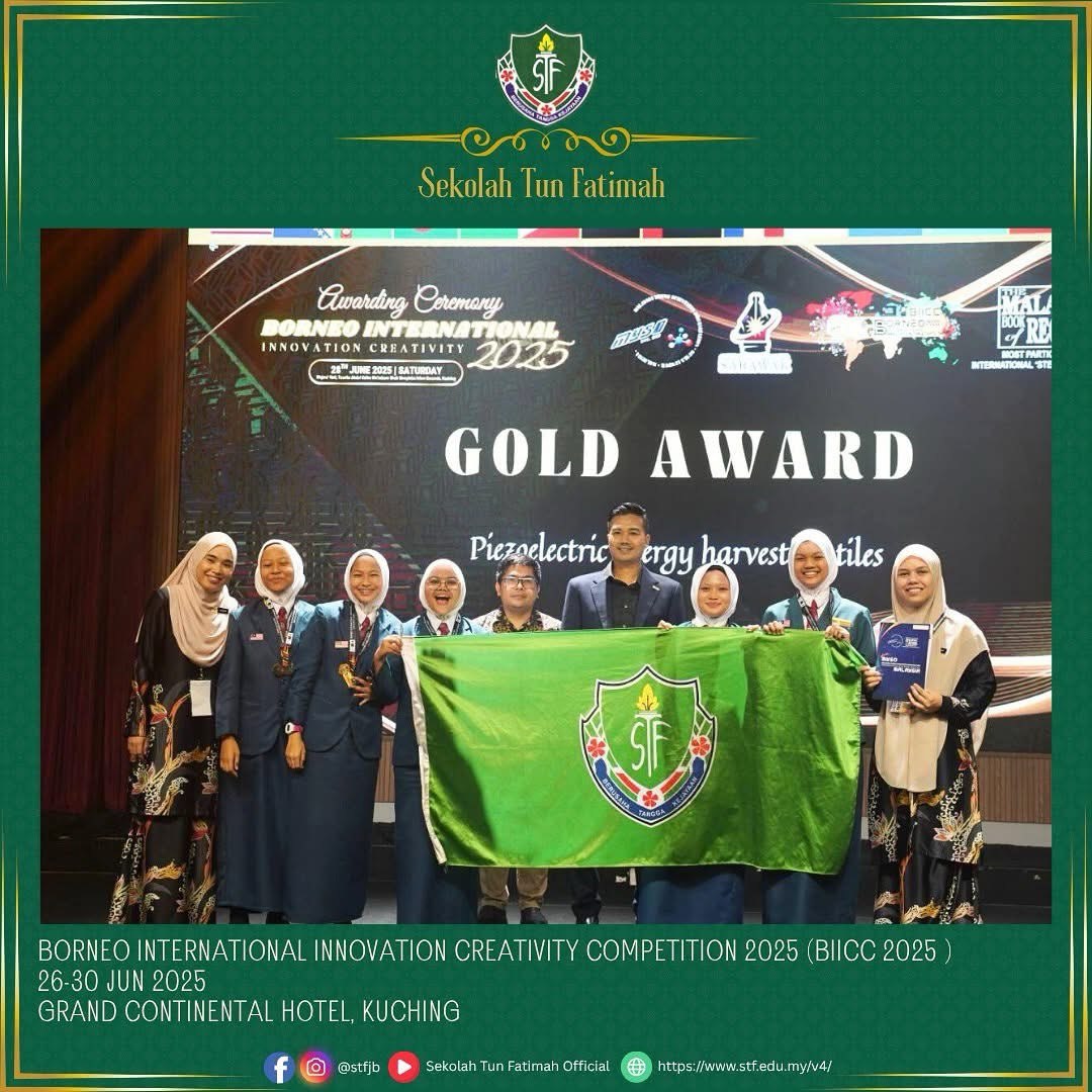 Tahniah dan syabas kepada semua peserta STF yang telah mengharumkan nama sekolah di Borneo International Innovation Creativity Competition 2025 (BIICC 2025) pada 26-30 Jun 2024 bertempat di Grand Continental Hotel, Kuching, Sarawak. Pertandingan berprestij ini dianjurkan oleh Malaysia Young Scientist Organisation (MYSO) menghimpunkan para inovator muda dari seluruh dunia dalam usaha mengangkat potensi kreativiti dan inovasi generasi masa depan.