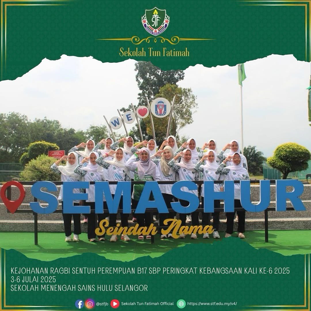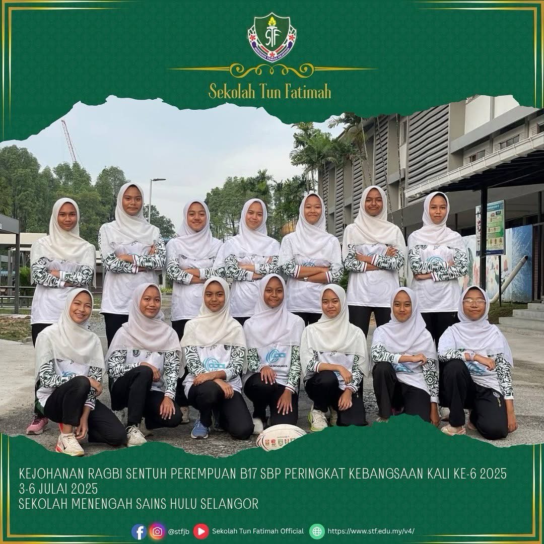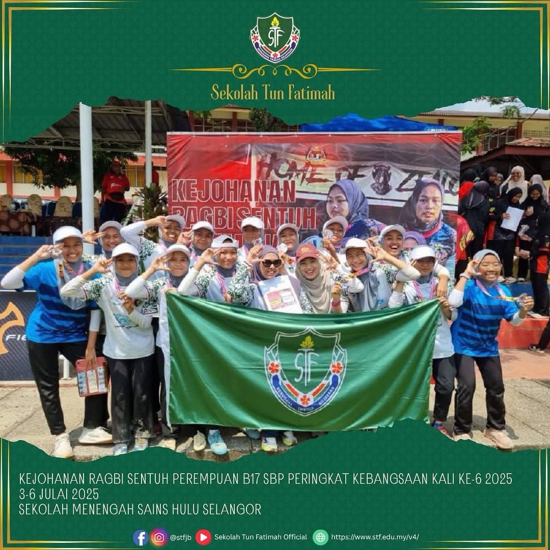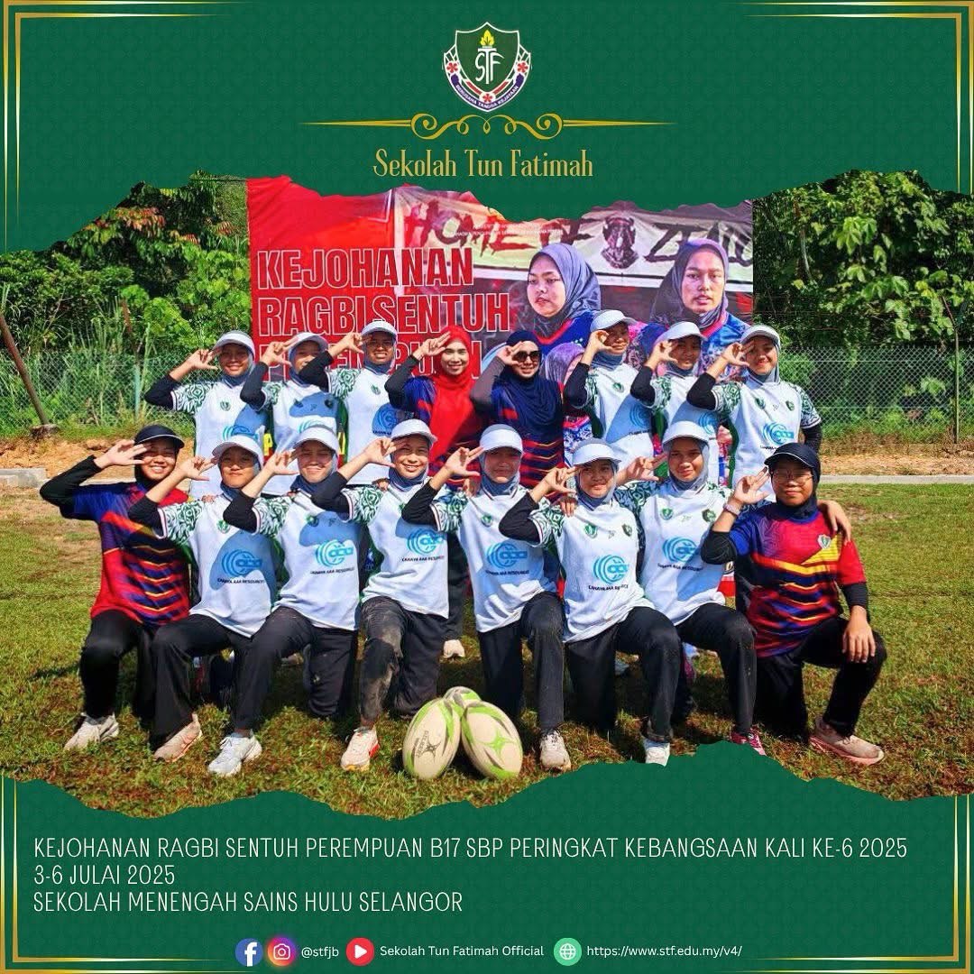 Alhamdulillah, pasukan STF telah melakar sejarah apabila berjaya meraih NAIB JOHAN kategori Bowl dalam Kejohanan Ragbi Sentuh Perempuan Bawah 17 Tahun Sekolah Berasrama Penuh Peringkat Kebangsaan Kali Ke-6 Tahun 2025. Persaingan sengit yang penuh dengan semangat juang dan kerja berpasukan ini menyaksikan aksi hebat dari para pemain dengan pencapaian membanggakan.