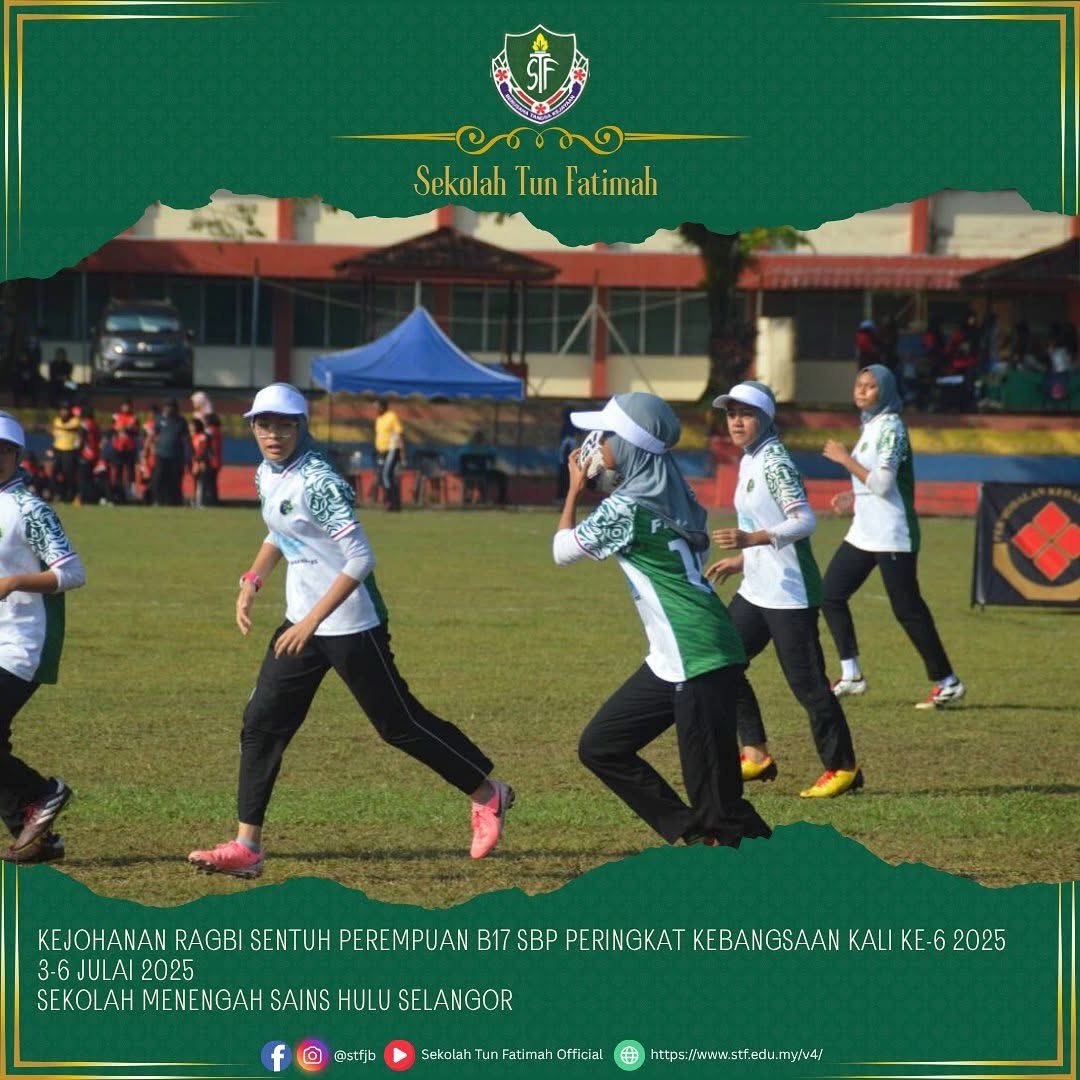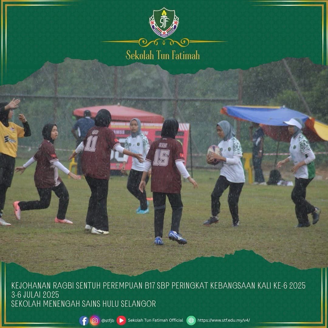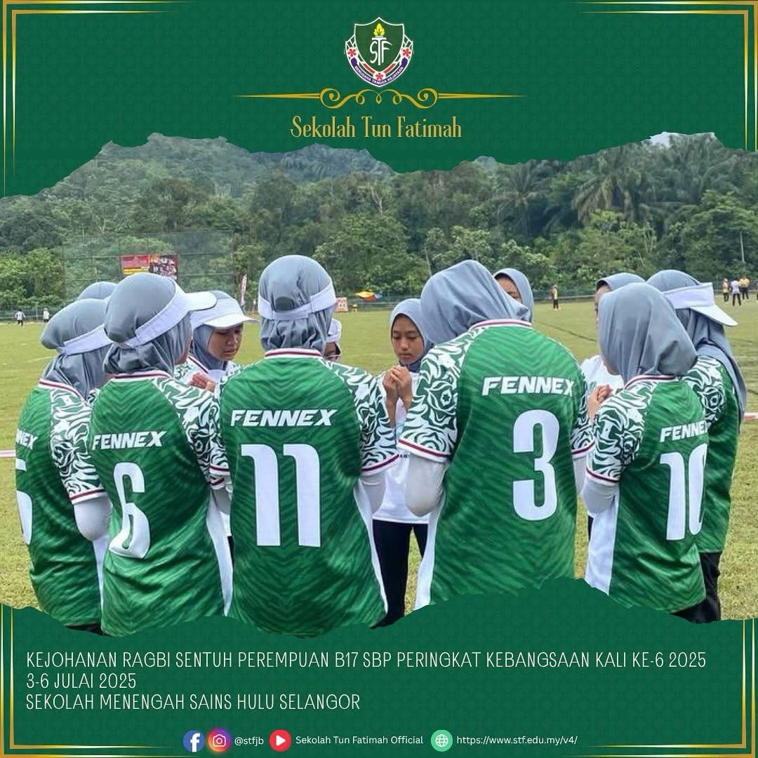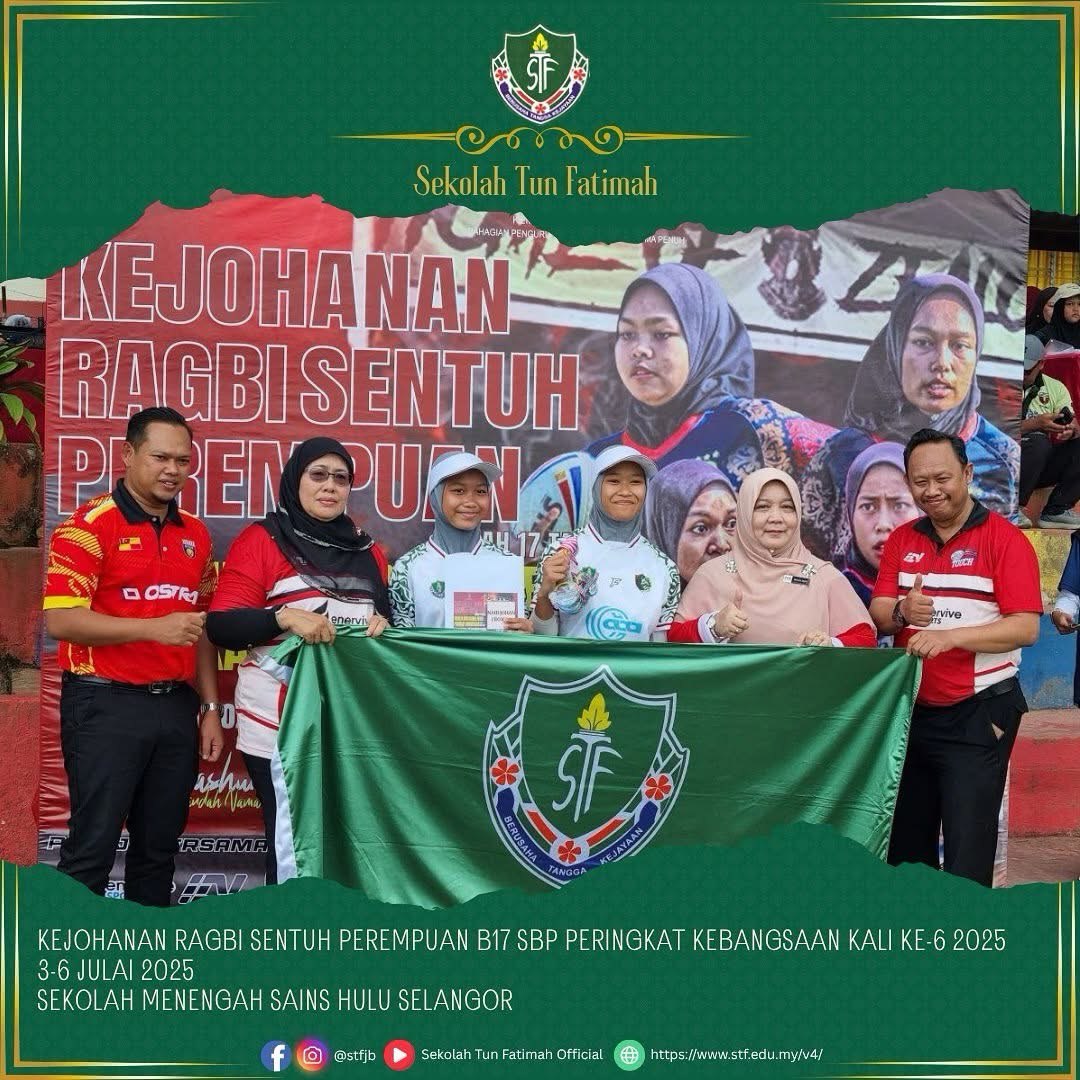 Alhamdulillah, pasukan STF telah melakar sejarah apabila berjaya meraih NAIB JOHAN kategori Bowl dalam Kejohanan Ragbi Sentuh Perempuan Bawah 17 Tahun Sekolah Berasrama Penuh Peringkat Kebangsaan Kali Ke-6 Tahun 2025. Persaingan sengit yang penuh dengan semangat juang dan kerja berpasukan ini menyaksikan aksi hebat dari para pemain dengan pencapaian membanggakan.