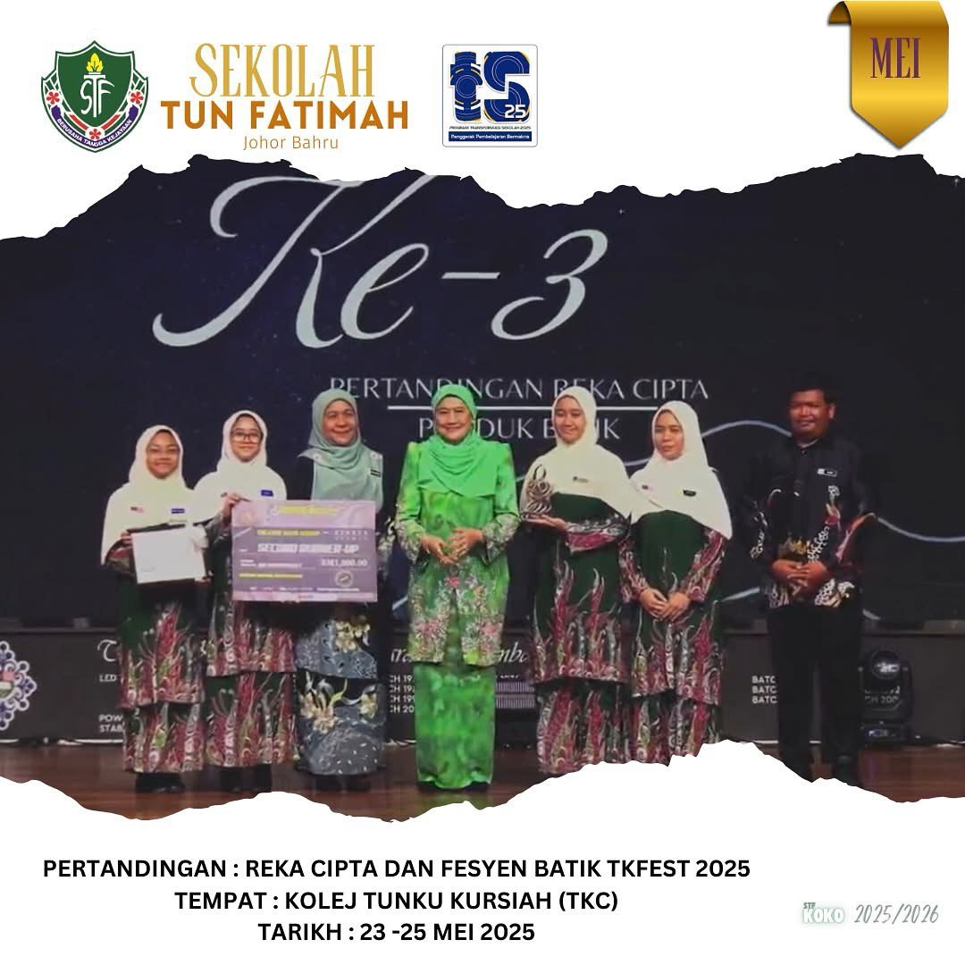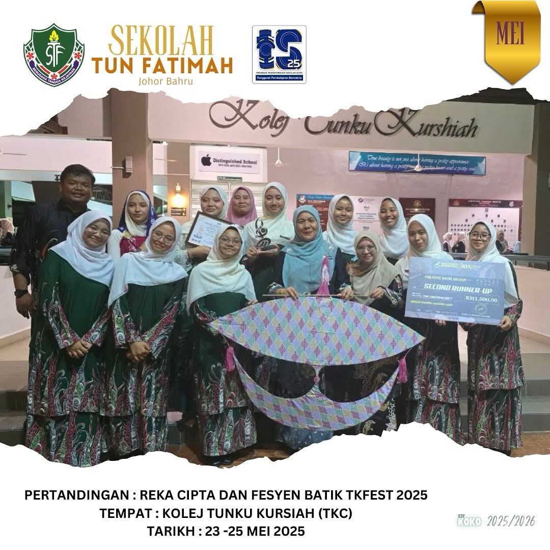 Alhamdulillah, pasukan Srikandi Panggung STF berjaya tersenarai dalam 3 persembahan terbaik daripada 17 pasukan daripada SBP yang mempersembahkan teater sekolah masing-masing. Satu pencapaian yang membanggakan dan menjadi suntikan semangat untuk terus melangkah lebih jauh dalam dunia seni persembahan.