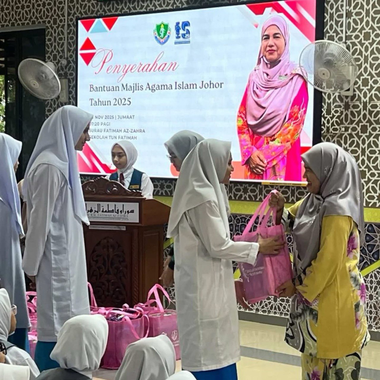 Alhamdulillah, pada 28 November 2025 (Jumaat) telah berlangsung Majlis Penyerahan Bantuan daripada Majlis Agama Islam Johor (MAIJ) kepada murid Tingkatan 5 bertempat di Surau Fatimah Az-Zahra, tepat pada jam 07.20 pagi. Semoga bantuan ini menjadi pemangkin semangat kepada semua murid untuk terus berusaha dengan bersungguh-sungguh menghadapi SPM 2025.