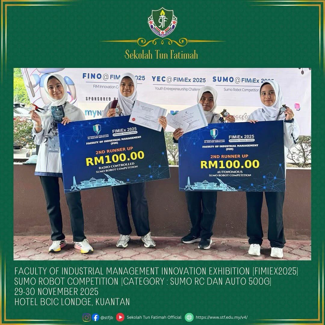 Tahniah dan syabas kepada para peserta STF yang telah menyertai Faculty of Industrial Management Innovation Exhibition (FIMiEx2025) bagi kategori Sumo RC & Auto 500g.