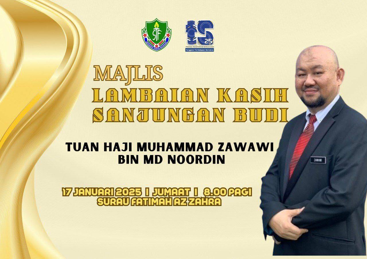 Pada 17 Januari 2025, berlangsungnya Majlis Lambaian Kasih Sanjungan Budi, khas sempena persaraan Tuan Haji Muhammad Zawawi bin Md. Noordin, Guru Data dan Maklumat Sekolah Tun Fatimah yang telah menabur bakti selama 28 tahun 2 bulan di Desa Tun.