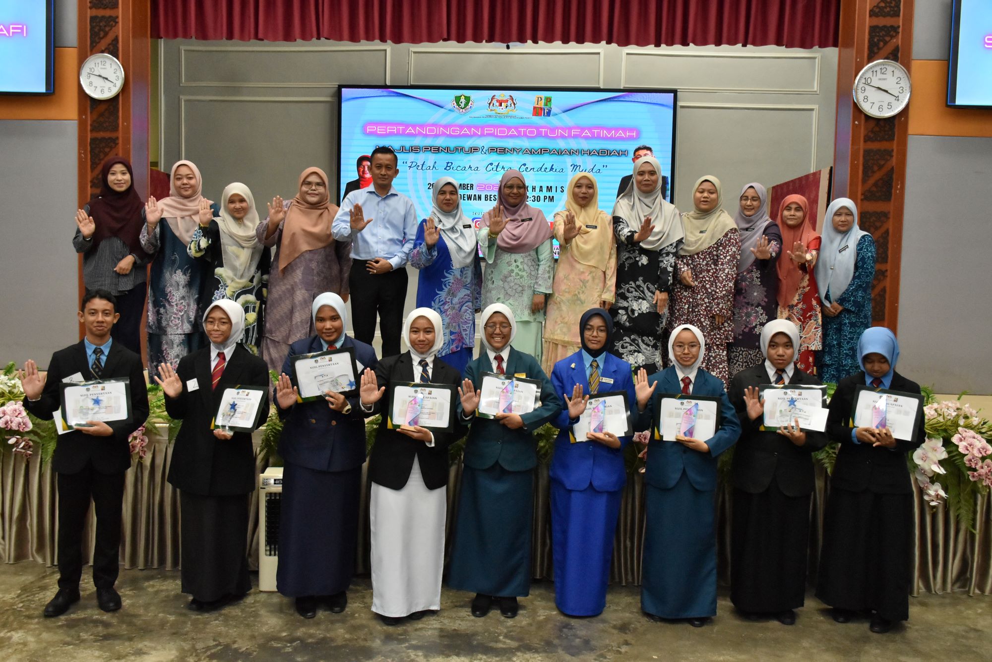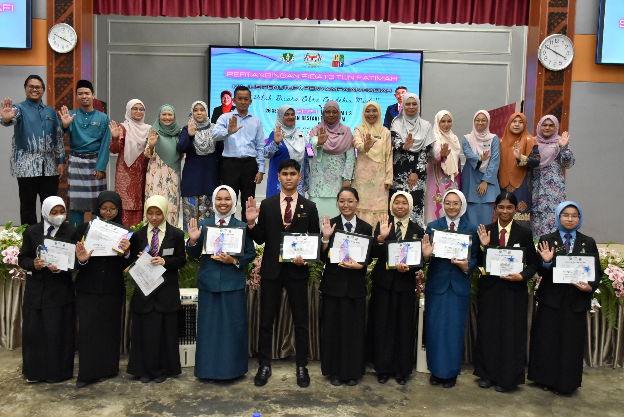 26 Sept. 2024 - Faseeh Fardha Binti Firdaus dari Sekolah Tun Fatimah Johor Bahru telah berjaya meraih Johan Pidato Tun Fatimah bagi kategori Menengah Rendah manakala bagi kategori Menengah Atas, Juicy Juciana Anak Julius dari SMK Taman Megah Ria, Pasir Gudang telah dinobatkan Johan dalam Pertandingan Pidato Tun Fatimah 2024 yang berlangsung di Sekolah Tun Fatimah Johor Bahru. Majlis penutup dan penyampaian hadiah telah disempurnakan oleh YBrs. Puan Hajah Azah binti Sulaiman, Ketua Penolong Pengarah Unit Bahasa, Sektor Pengurusan Kurikulum (SPK), Bahagian Pengurusan Sekolah Berasrama Penuh, (BPSBP) selaku wakil rasmi Timbalan Pengarah, BPSBP, KPM.