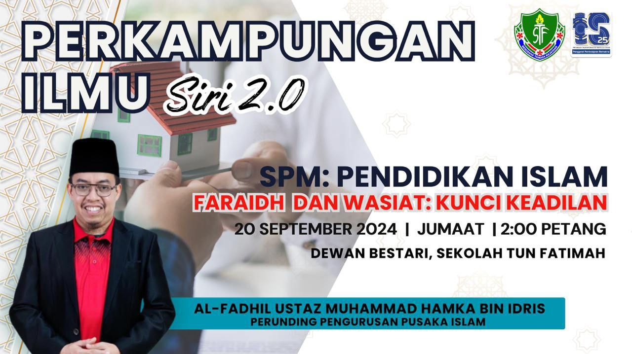 20 Sept. 2024 - Pengisian Perkampungan Ilmu Siri 2.0 bagi mata pelajaran Pendidikan Islam - SPM bertajuk Faraidh dan Wasiat, Kunci Keadilan disampaikan oleh Al-Fadhil Ustaz Muhammad Hamka bin Idris, Perunding Pengurusan Pusaka Islam.