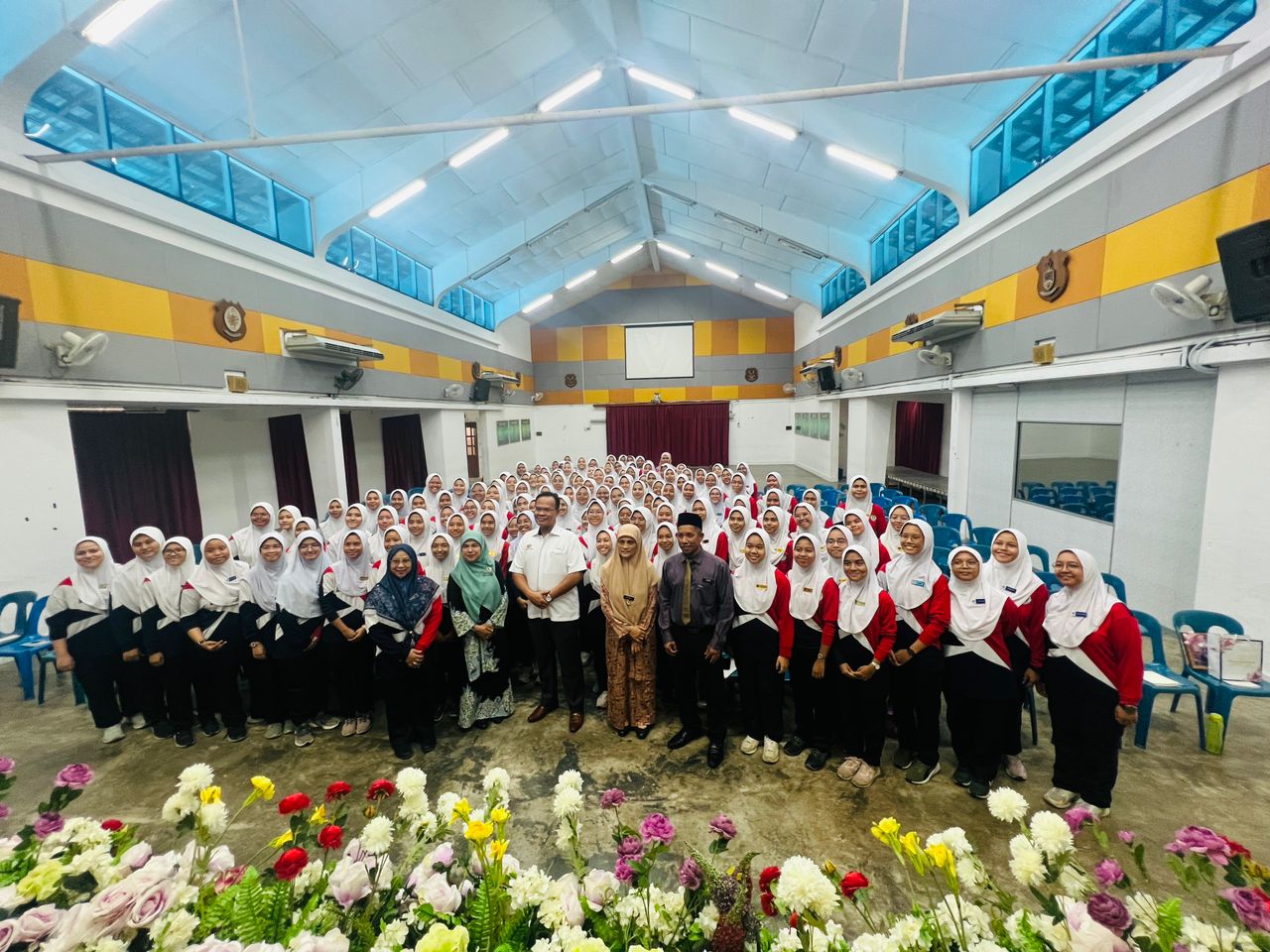 2 Julai 2024 - Keberadaan YBrs. En. Ab Aziz bin Mamat, Pengarah Bahagian Pengurusan Sekolah Berasrama Penuh, KPM di Sekolah Tun Fatimah selepas memberikan ucaptama semasa Bengkel Kerja Penyelarasan Perancangan Pembangunan Program Projek Pendidikan Baharu Sekolah Berasrama Penuh (SBP) Dalam Rancangan Malaysia Ke-13diisi dengan program Bicara Tuan Pengarah bersama murid tingkatan 5 di Dewan Bestari STF.