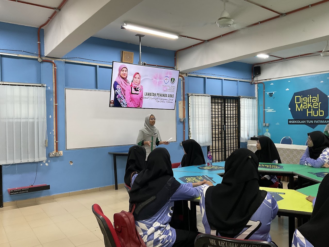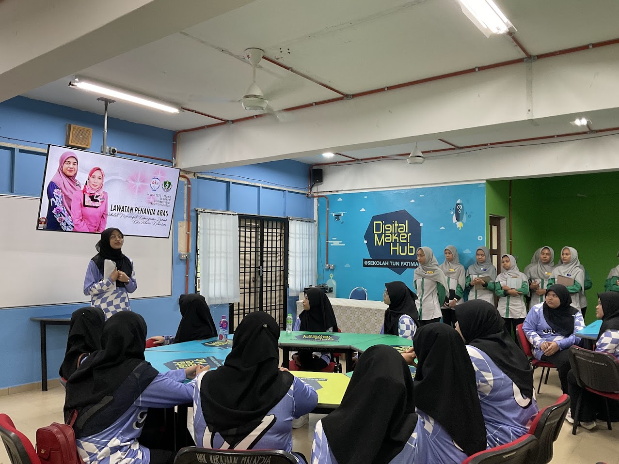 4 Julai 2024 - Lawatan Penanda Aras dari Sekolah Menengah Kebangsaan Zainab (SEMENZA), Kota Bharu diketuai oleh Pn. Sharifah Nor Arinawati binti Long Ibrahim selaku Pengetua dan 5 orang guru serta 32 orang murid SEMENZA ke STF. Program dimulai dengan Tayangan Video Korporat STF, Ucapan Alu-aluan dari Bonda Hajah Radziah binti Mohd Din, Pengetua STF. Seterusnya Taklimat Program Kecemerlangan Akademik disampaikan oleh Pn. Nakimah binti Paimin selaku Penolong Kanan dan Taklimat Perkongsian Program Apple Distinguished School (ADS) oleh En. Muhammad Zawawi bin Md Noordin. Program diakhiri dengan taklimat oleh Tech Leader Tingkatan 3 tentang projek-projek yang dihasilkan menggunakan aplikasi-aplikasi seperti Pages, Keynotes, Garage Band, iMovie dan Reality Composer.