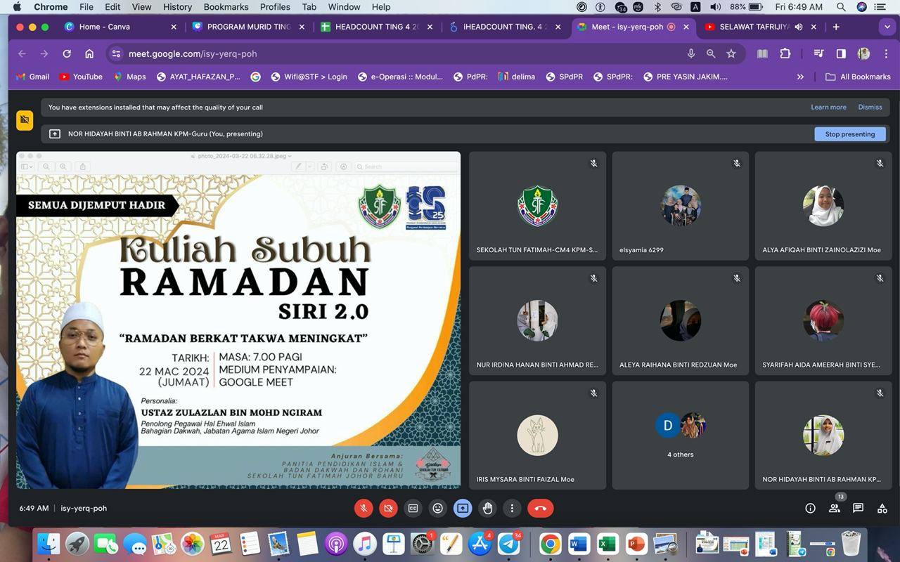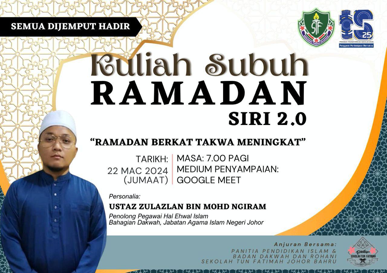 Kuliah Subuh Ramadan Siri 2.0 - “Ramadan Berkat Takwa Meningkat” telah dijayakan oleh Unit HEM dan Panitia Pendidikan Islam secara hybrid pada ketetapan berikut: