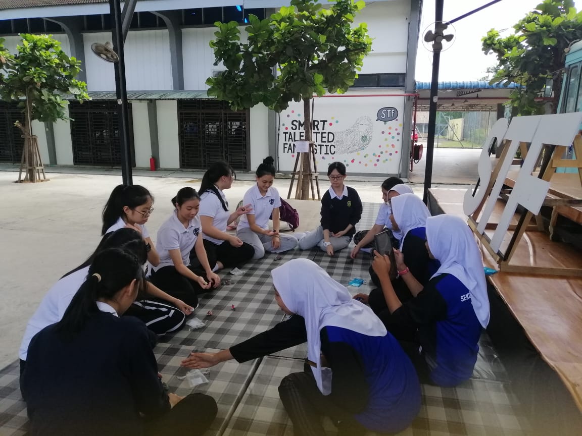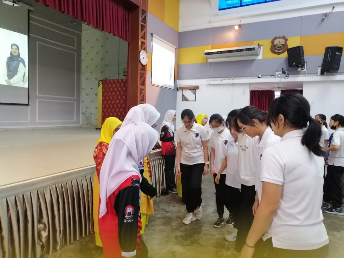 We are honoured that our sister school, Nanyang Girls High School (NYGHS), decided to visit us today. Eighty-one (81) students and twelve (12) teachers arrived at Desa Tun around 8.30am in three buses. The delegation from NYGHS was led by Ms Tan Joo Yee, the Bursar of NYGHS. They were warmly welcomed by fifty-two (52) students from 3 Feminin & 3 Tegas. Bonda Hjh Radziah was also present to welcome Nanyang Girls High School to Desa Tun.