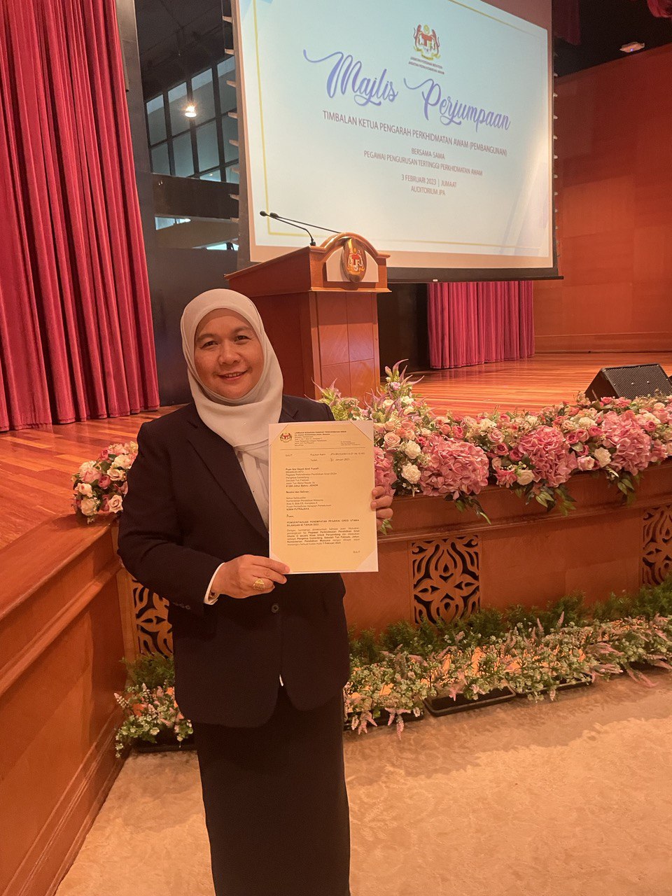 3 Feb. 2023 - Syabas dan Tahniah dari seluruh warga Desa Tun kepada Bonda Nor Hayati binti Yusoff, Pengetua Cemerlang STF di atas pengiktirafan JUSA C. Semoga terus cemerlang.