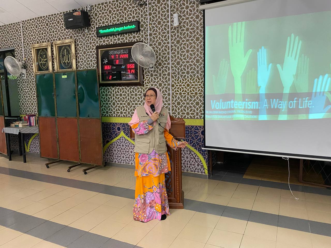 26 Jan. 2023 - Ceramah kemanusiaan bertajuk Volunteerism : A Way of Life yang disampaikan oleh Dr. Fauziah binti Mohd Hasan berlangsung di Surau Fatimah Az-Zahra, STF. Penceramah merupakan Ahli Lembaga Pemegang Amanah MyCARE @mycare.hq dan juga merupakan Srikandi Tun Fatimah.
