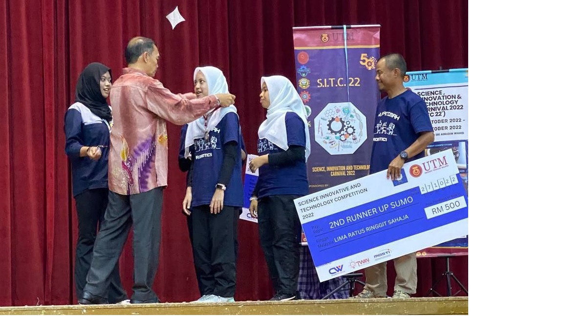 27 Okt. 2022 - Tahniah dan syabas kepada pasukan Robotik STF yang mengungguli kategori robot SUMO dalam pertandingan SCIENCE INNOVATIVE AND TECHNOLOGY COMPETITION 2022 yang berlangsung di UTMKL. Mereka telah mendapat tempat pertama , kedua dan ketiga.