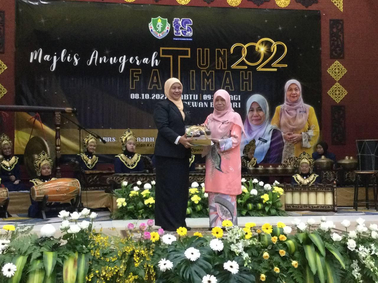8 Okt. 2022 - Majlis Anugerah Tun Fatimah 2022 berlangsung dengan lancar dan meriah yang telah disempurnakan oleh YBrs. Dr. Hajah Norisah binti Suhaili, Timbalan Ketua Pengarah Pendidikan Malaysia (Sektor Operasi Sekolah), Kementerian Pendidikan Malaysia di Dewan Bestari. Majlis yang bertujuan menghargai kecemerlangan murid dan guru serta staf turut disiarkan secara langsung melalui Channel Youtube Rasmi STF. Dr. Hajah Norisah binti Suhaili yang pernah bertugas sebagai Pengetua di STF pada 15 Jun hingga 6 Disember 2020 dinobat sebagai penerima Anugerah Jasa Gemilang. Anugerah Srikandi dianugerahkan kepada Nurfatin Nabilah binti Khanafi manakala Ina Aqila binti Sa'adon menerima Anugerah All Rounder.