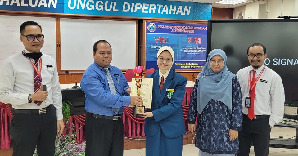 26 Sept. 2022 - Majlis Penyampaian Hadiah Anugerah Nilam Peringkat Daerah PPD Johor Bahru. Saudari Raja Atiqah Sophia binti Raja Azman telah berjaya mendapat Johan bagi kategori Anugerah Nilam Bahasa Inggeris Sekolah Menengah dan saudari Afrina Farzana bnti Abdul Hafiz telah memenangi Naib Johan bagi kategori Anugerah Nilam Bahasa Melayu Sekolah Menengah. Hadiah disampaikan oleh Tuan Hj Tukiman bin Sarmin, Timbalan PPD Pembelajaran , PPD Johor Bahru di Dewan Seminar PPD JB.