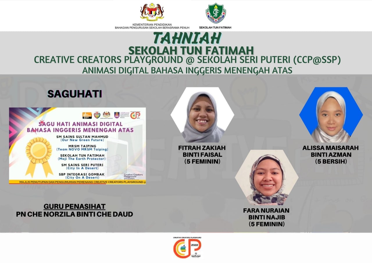 Terima kasih kepada semua yang menyertai program CREATIVE CREATORS PLAYGROUND @ SEKOLAH SERI PUTERI (CCP@SSP)