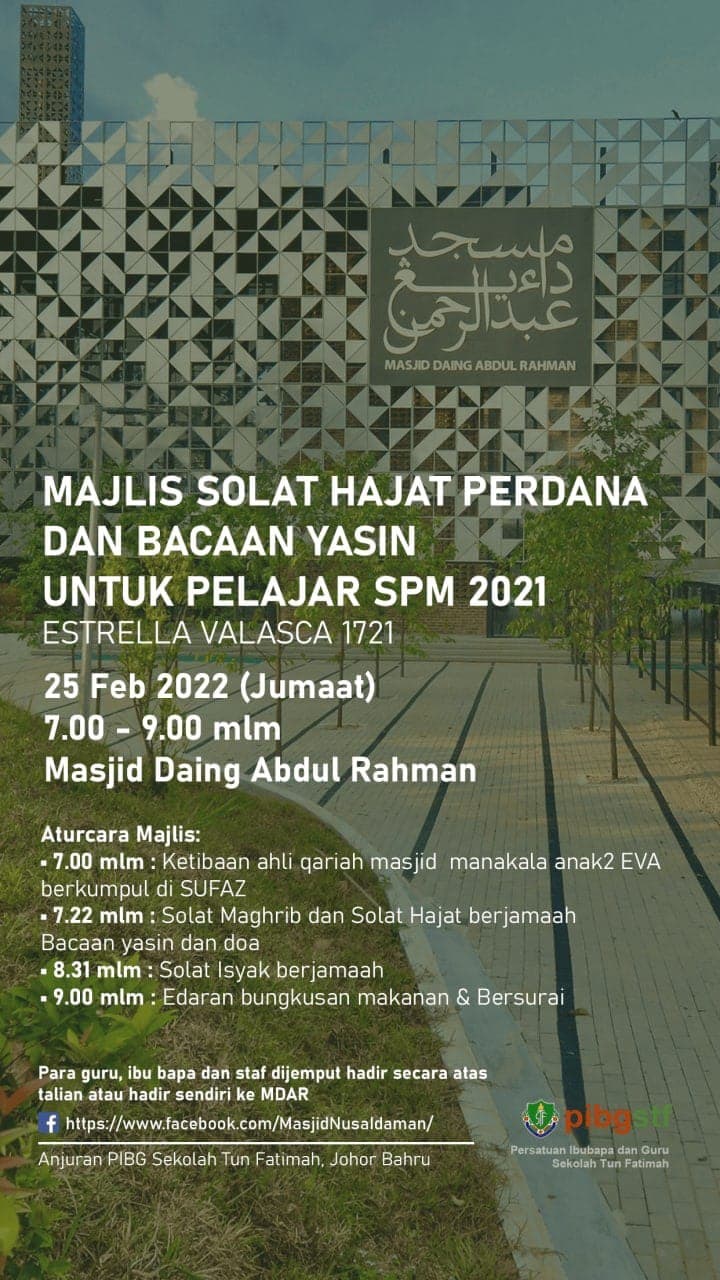 27 Feb. 2022 - Majlis Restu Ilmu SPM Bacth Estrella Valasca berlangsung di Dewan Melati secara hibrid bersama ibu bapa melalui maya. Kami semua guru telah merestui apa yang telah diberikan, semoga kejayaan cemerlang akan dikecapi oleh Estrella Valasca.