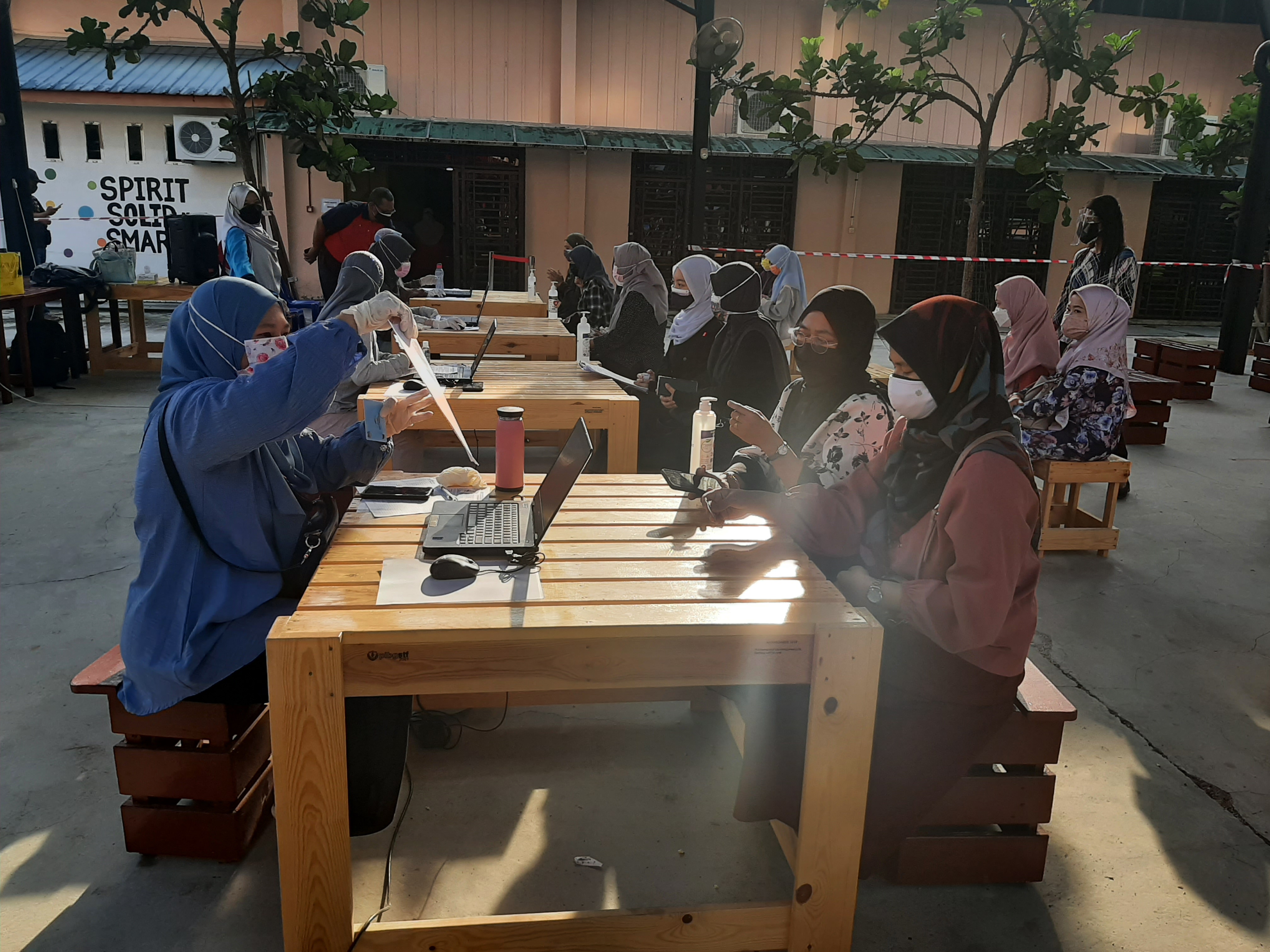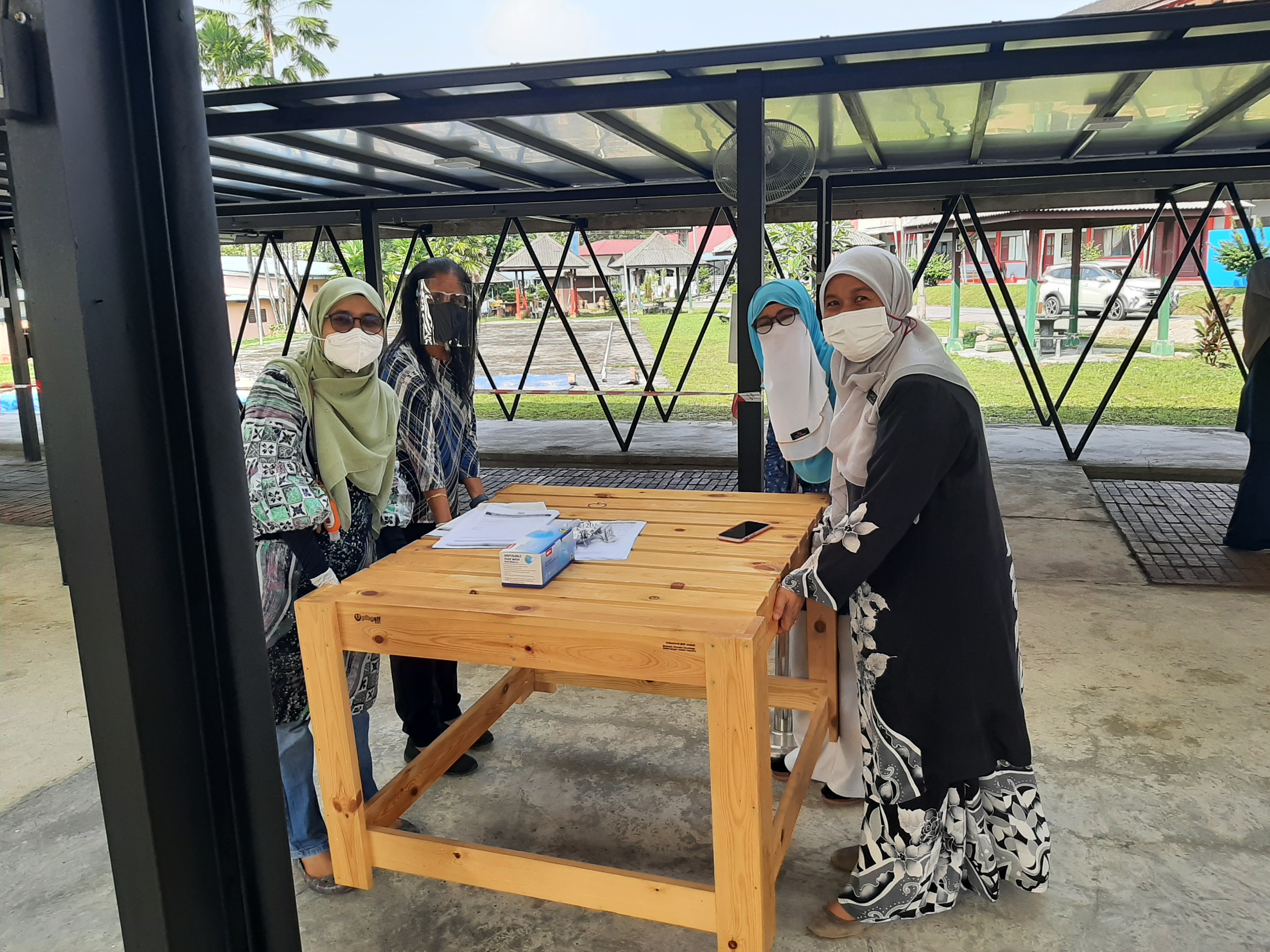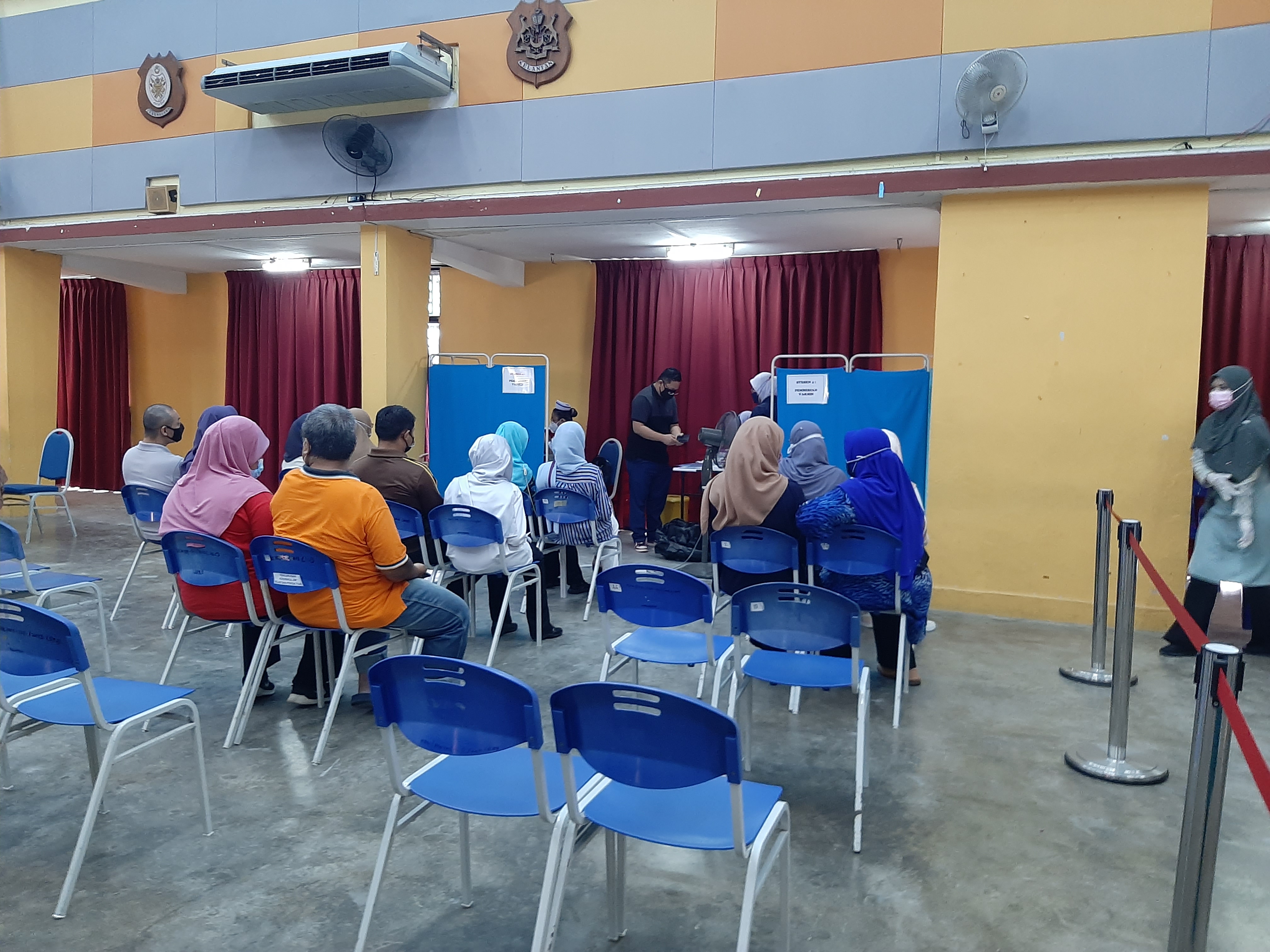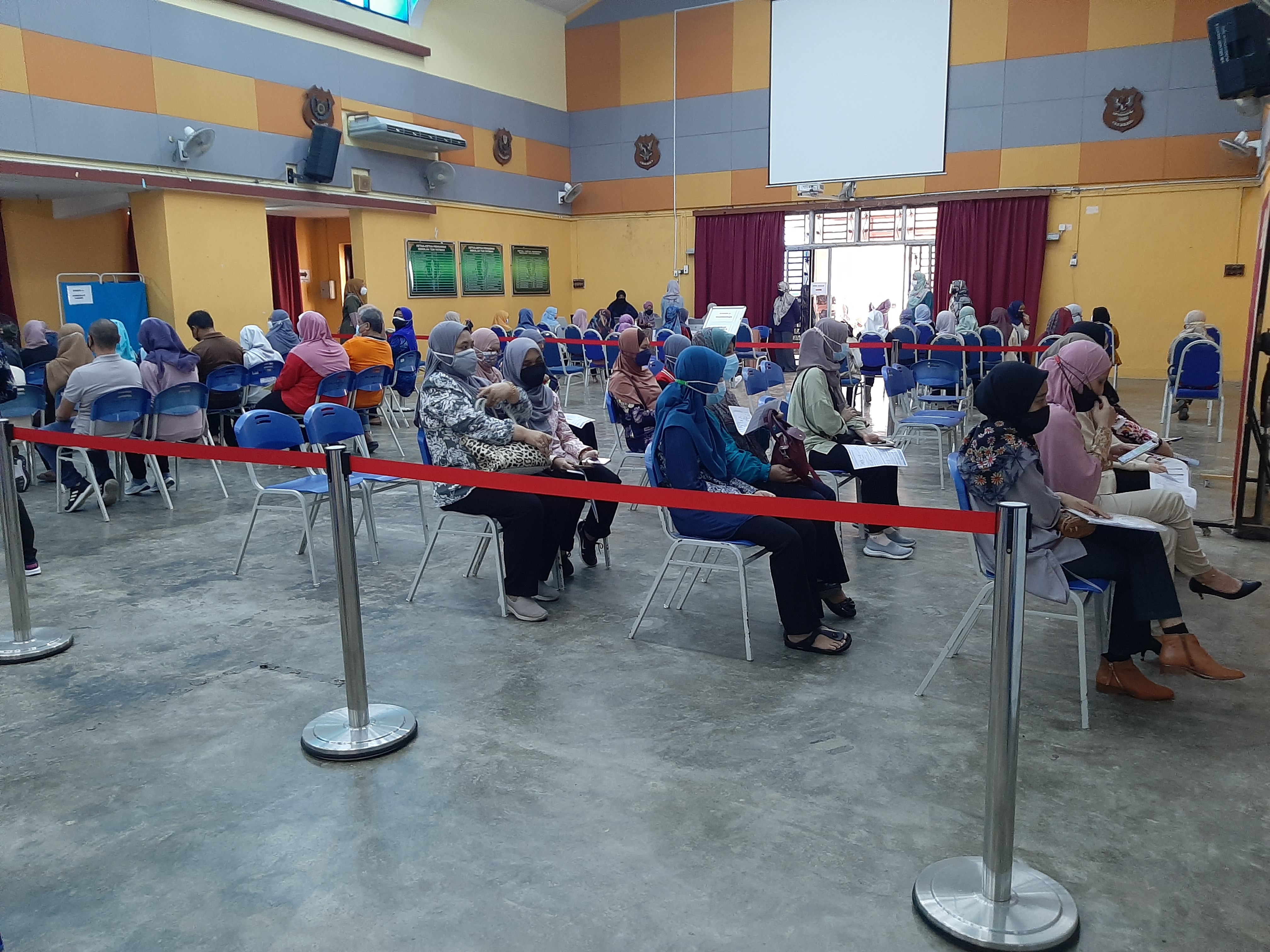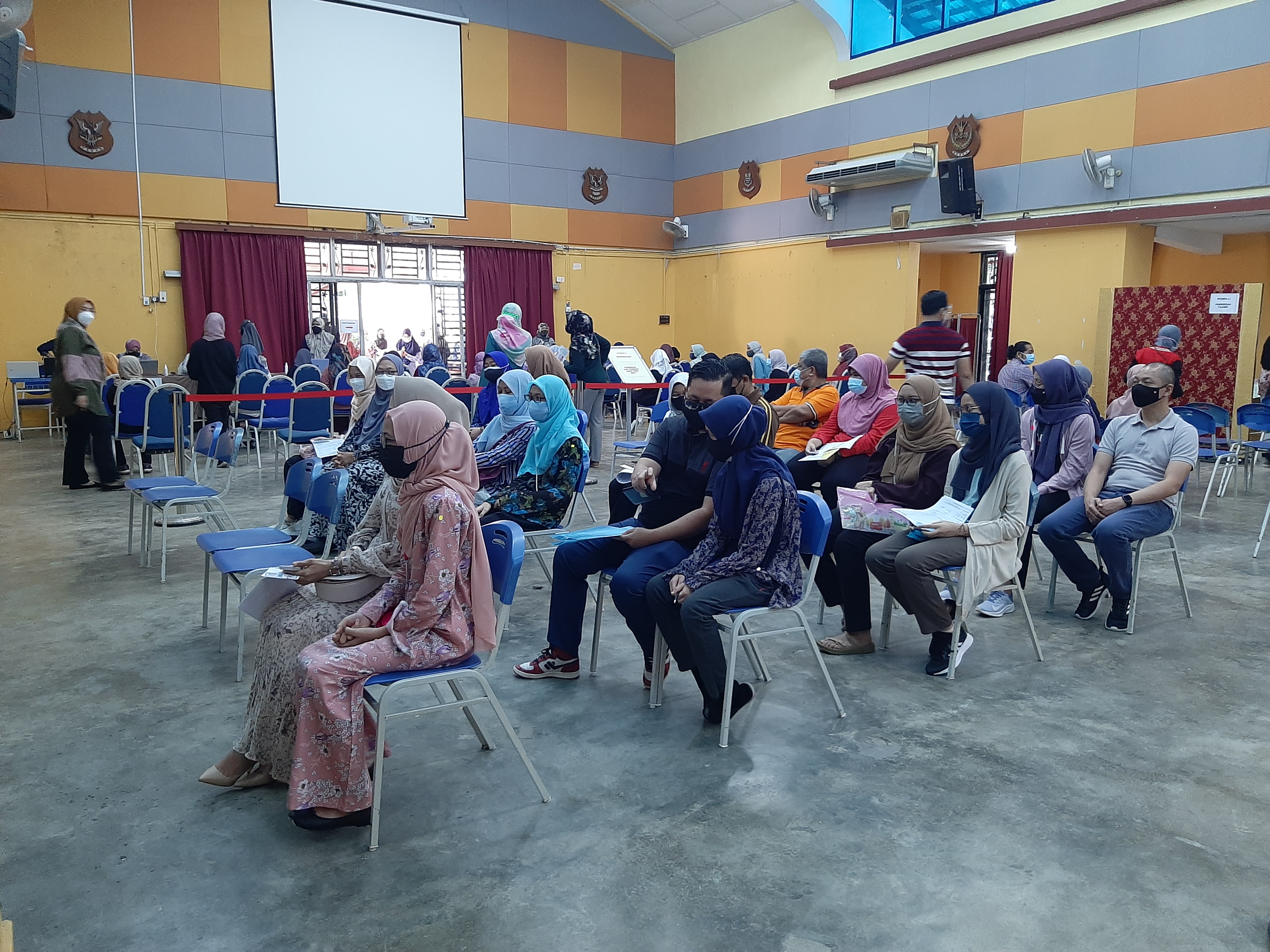 29 Sept. 2021 - Proses Pemberian Vaksin di Pusat Pemberian Vaksin STF berjalan lancar pada hari ini. Ibu bapa dan anak mula sampai jam 8 pagi walaupun pendaftaran bermula jam 8.30 pagi.