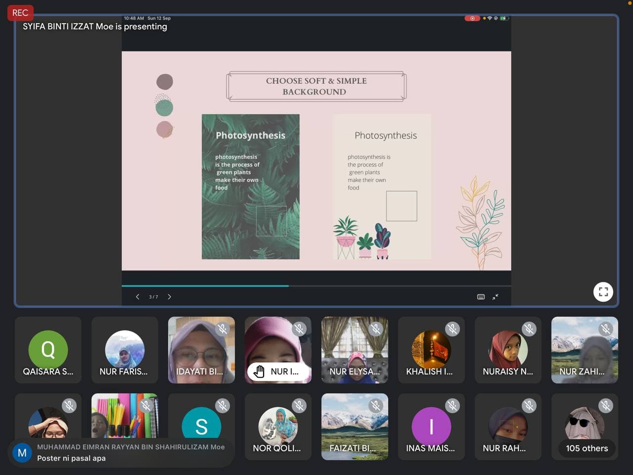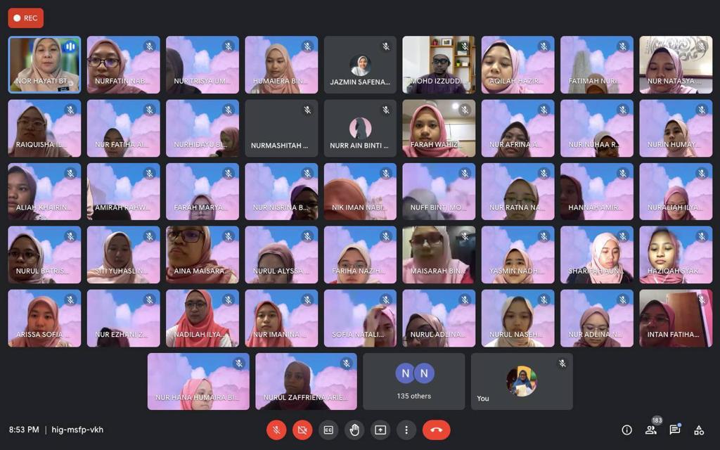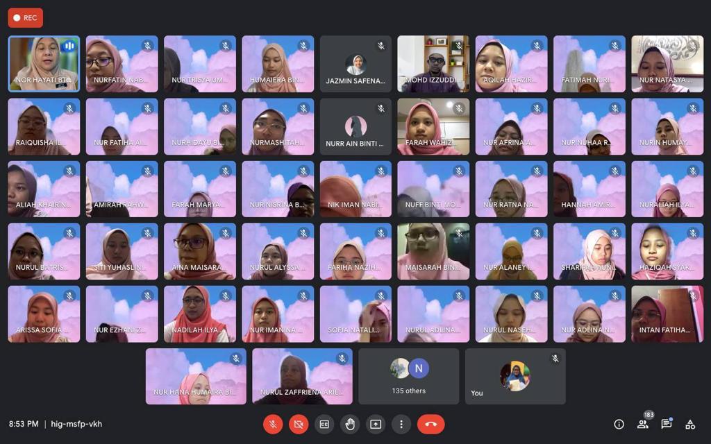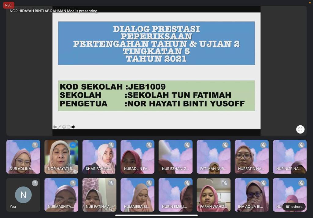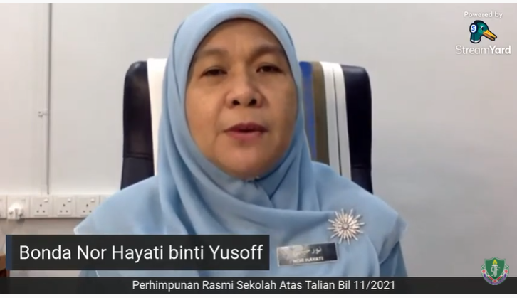 4 September 2021 - Bual bicara bersama Bonda Nor Hayati bin Yusoff, Pengetua Cemerlang Sekolah Tun Fatimah dan anak-anak syurga Estrella Valasca bersama para ibu bapa telah berjaya dilaksanakan secara maya menggunakan medium Google Meet . Majlis dimulakan dengan bacaan doa yang dipimpin bacaannya oleh Ustaz Mohd Izzudin bin Mohd Romli . Bonda mengatakan bahawa ini merupakan penampilan terakhir ustaz di STF kerana akan berpindah ke Sekolah Menengah Sains Muar (SAMURA) setelah menamatkan khidmatnya selama 5 tahun di sini. Bual bicara bonda dimulakan dengan menganalisis pelajar yang tidak dapat menghadirkan diri ke perhimpunan atas talian pada 29 Ogos yang lalu . Bonda mengatakan ini merupakan perkara yang remeh temeh tetapi perlu diambil serius kerana semua pelajar tingkatan 5 akan menempuhi alam universiti dan pekerjaan.
