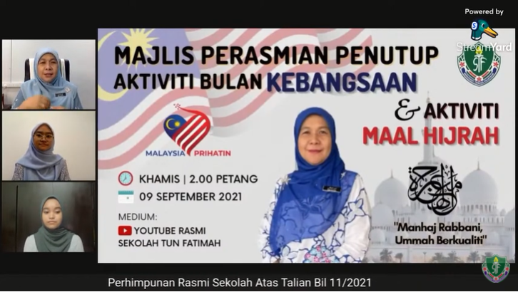 9 September 2021 – Perhimpunan rasmi Sekolah Tun Fatimah atas talian bilangan ke-11 telah berjalan dengan lancar menerusi medium Youtube Rasmi STF. Perhimpunan rasmi tersebut dimulakan tepat pada pukul 2.45 petang dengan nyanyian lagu Bangsa Johor dan lagu Negaraku.Bacaan suci ayat Al-Quran alunan saudari,Nur Dinie Aleya binti Noraizam daripada kelas 3 Setia.Kemudian diteruskan dengan bacaan doa oleh Ustaz Ruzaiza bin Ahmad.