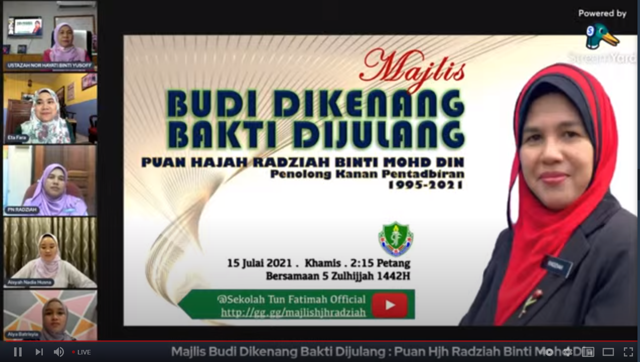 Layari video Majlis Budi Dikenang Bakti Dijulang di youtube Sekolah Tun Fatimah Official