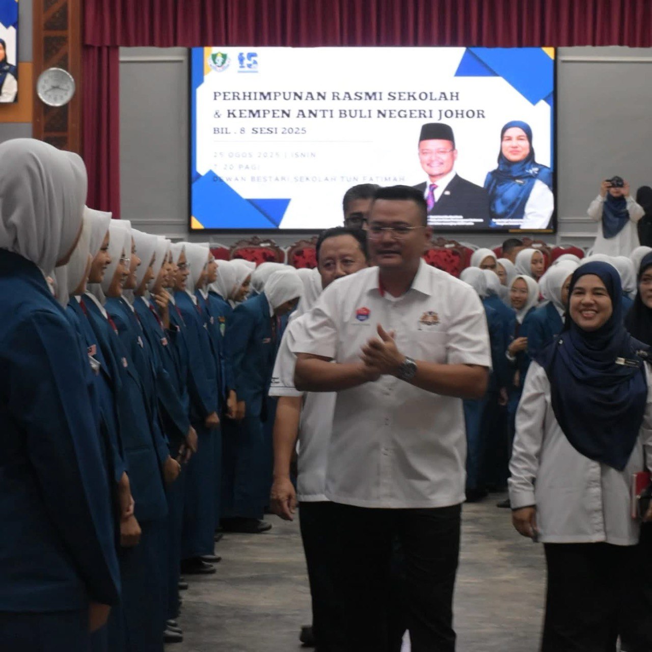 Majlis pelancaran ini telah disempurnakan oleh YB Tuan Mohd Hairi Mad Shah, Pengerusi Jawatankuasa Belia, Sukan, Pembangunan Usahawan dan Koperasi Negeri merangkap ADUN Larkin, yang hadir menyampaikan ucapan khas YAB Menteri Besar Johor, Dato’ Onn Hafiz Ghazi. Dalam ucapan tersebut, YAB Menteri Besar Johor menegaskan komitmen kerajaan negeri untuk memastikan gejala buli dibanteras habis-habisan demi melahirkan generasi pelajar yang berdisiplin, beradab, serta mampu menyumbang kepada pembangunan negeri dan negara.